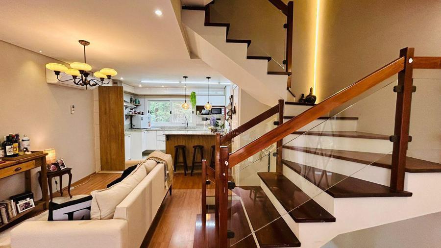Descubra esta elegante casa geminada mobiliada com 164,58m² de área no charmoso Residencial Árvores de Canela. Projetada para oferecer conforto e sofisticação, a residência conta com 3 suítes, incluindo uma master com closet e hidromassagem, ideal para momentos de relaxamento e privacidade. O amplo living integra uma sala de estar aconchegante com lareira, sala de jantar e uma cozinha equipada com bancada e churrasqueira. Complementam os espaços uma sacada, lavabo, escritório funcional, ar-condicionado e esperas para calefação, além de um agradável garden para momentos ao ar livre. Com 2 vagas de garagem e localização privilegiada em um bairro tranquilo e valorizado, este imóvel é perfeito para morar com estilo ou investir na charmosa Canela!